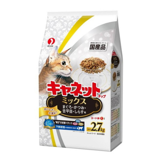 ★ 猫の大好きなまぐろ、かつお、舌平目の3つのおいしさを贅沢にミックス。猫の健康維持に必要な各種栄養素をバランスよく配合。サクサクした食感、猫の食べやすいサイズに仕上げました。