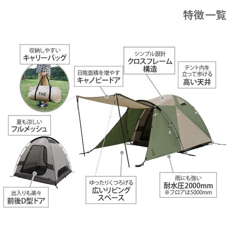 * 付属品:グランドシート、ロープ×6本(テントに取り付け済)、ペグ×17本、キャリーバッグ