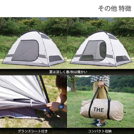 インナーテントは前後の大型ドア、サイド面には4つの窓がついており、360°どこからでも風を取り込むことができます。春や秋など、肌寒い時期にはインナーテントをフルクローズして熱が逃げにくい状態にすることもできます。
