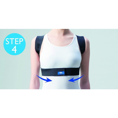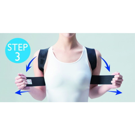 肩甲骨から上体を起こす背中のレザータッチの支点と、動滑車を折り返し点としたウエストベルトの長さの調整により、無理なく背筋を伸ばし、姿勢をサポート。
