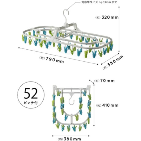 ★ たっぷり干せる52ピンチのこだわり機能ハンガー