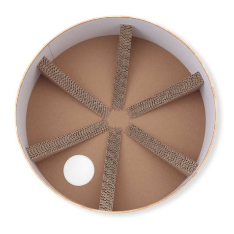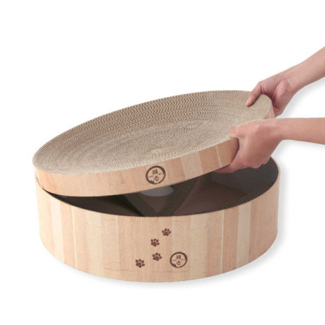 ★ つめとぎ兼ベッド部分はダンボール製。重なりあった薄いダンボールが、土台に沿ってきれいなすり鉢状を作ります。猫のやわらかいからだにフィットするので、猫がリラックスできます。
