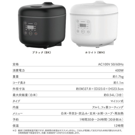 * 付属品:内釜・深型しゃもじ、しゃもじ、計量カップ(約160ml)、電源コード