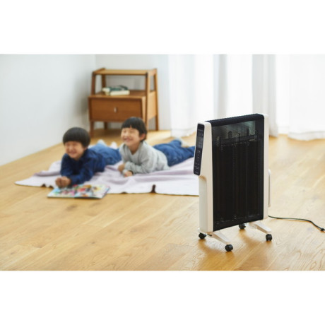 温風を出すエアコンやファンヒーターと異なり、遠赤外線効果でカラダを直接すばやくあたため、輻射熱でお部屋をじんわりとあたためます。 そのため、運転開始後すぐにお部屋全体はあたたまりません。