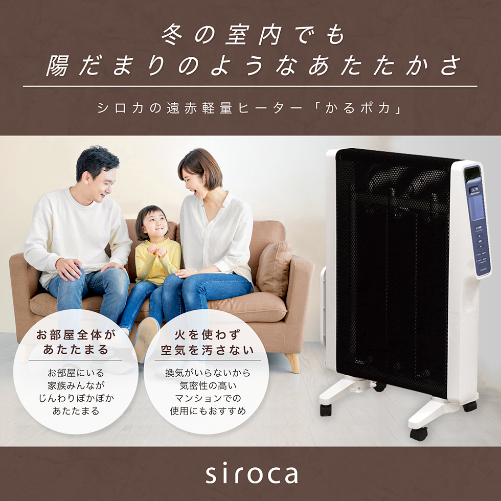 冷え切った室内、暖房を入れてもなかなか暖まらない…。遠赤軽量なら、スイッチを入れた瞬間からじんわり暖かさを感じることができます。