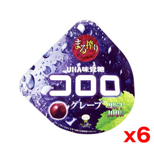 * 成分:果糖ぶどう糖液糖(国内製造)、砂糖、濃縮グレープ果汁、水飴、コラーゲン、ぶどうピューレ、植物油脂/グリセリン、酸味料、ゲル化剤(増粘多糖類)、香料、リン酸水素二カリウム、クエン酸カリウム、光沢剤、セルロース、安定剤(CMC)、乳酸カルシウム、(一部に牛肉・ゼラチンを含む)
