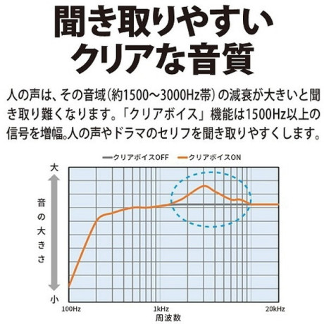 「クリアボイス」機能は1500Hz以上の信号を増幅。