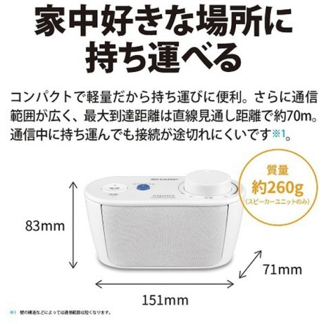 * 寸法(幅×奥行×高さ):151×71×83mm(スピーカーユニット部)/65×52×23mm(送信機)