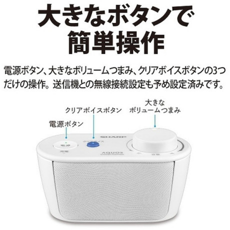 電源ボタン、大きなボリュームつまみ、クリアボイスボタンの3つだけの操作。