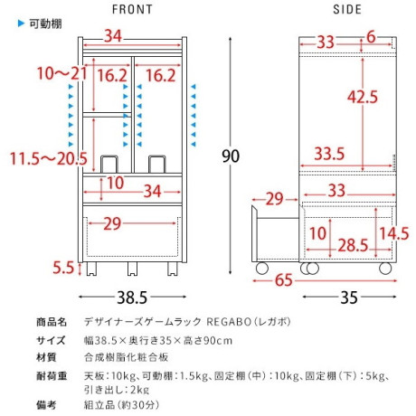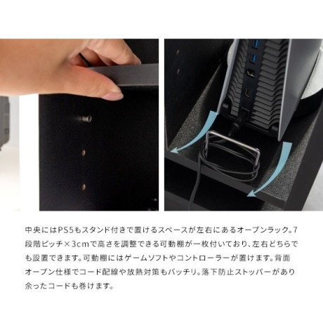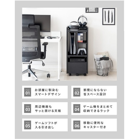 幅29x奥28.5x高14.5cmの広々引出でゲームソフトなら20枚収納可能。