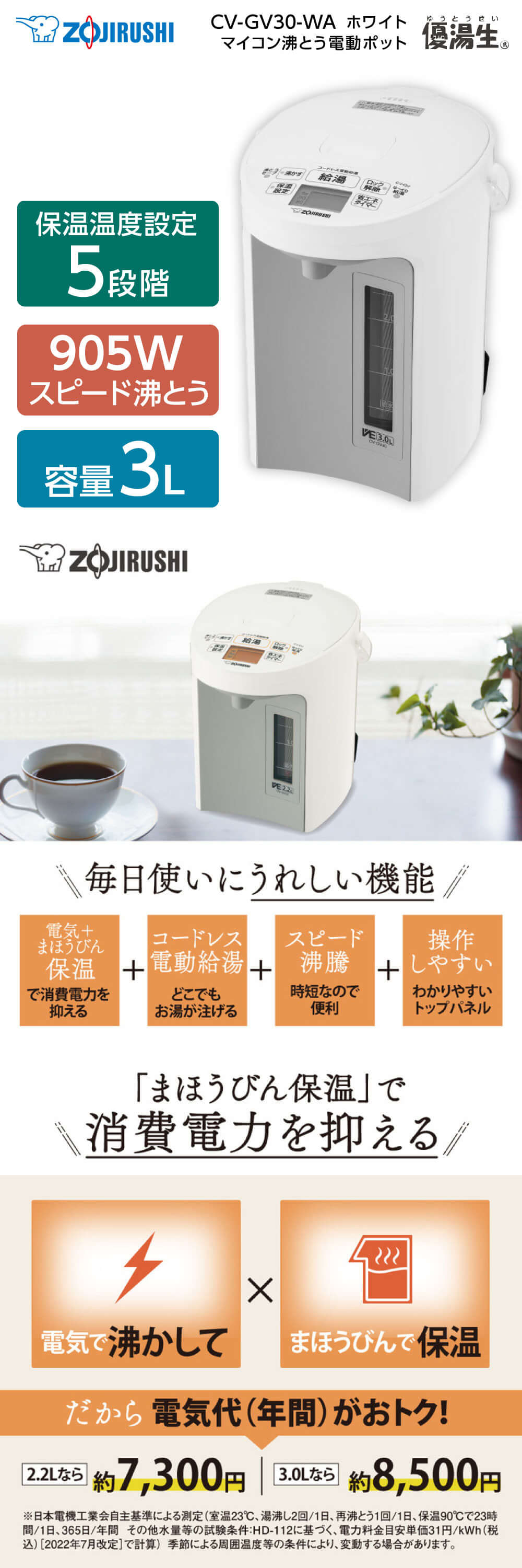 電気とまほうびん構造を組み合わせてかしこく保温することで、消費電力量を抑えます。