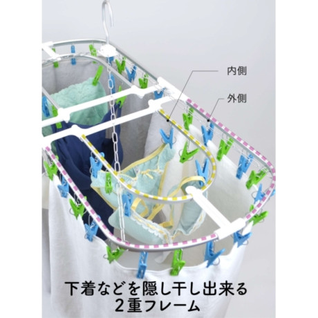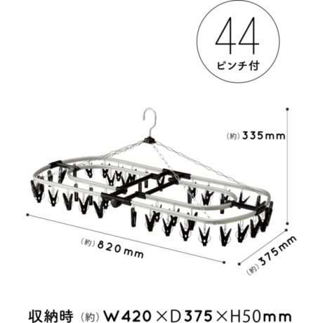 ★ 軽くて丈夫、さらに清潔感のあるアルミ製フレームを使用。★ フック部も太くて丈夫なアルミ製です。★ 2重フレームで目隠し干しが出来ます。* サイズ:80×38×30cm(使用時)* 重さ:930g* 素材:アルミ・ポリプロピレン・鋼線