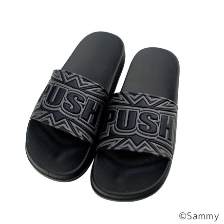 PUSHボタンのシャワーサンダルが登場! 「PUSH」の型押しデザインがかっこいい! サイズはM(26cm)、L(28cm)の2種類ございます。>