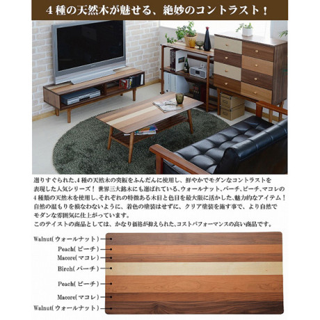 ★ ヨギアシリーズは、選りすぐられた4種類(ウォールナット、バーチ、ピーチ、マコレ)の天然木の突板を使用することで、個性的で温もりのある見事なコントラスを演出した商品です。