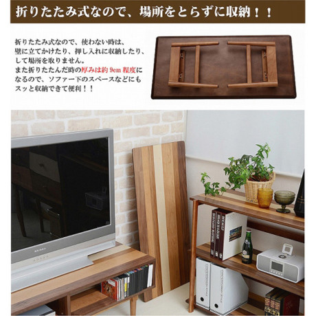 こちらのテーブルは、棚板もついていているので、片付けにも便利です。