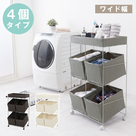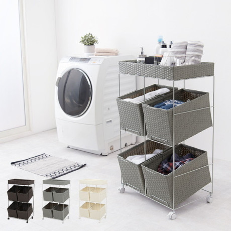 色柄物や汚れた洗濯物を分けて溜められるランドリーワゴン。