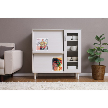 * 耐荷重(約):全体65kg、天板20kg、底板10kg、フラップ扉1枚あたり1kg、スライド棚10kg、可動棚板(大)8kg、(小)1枚あたり5kg