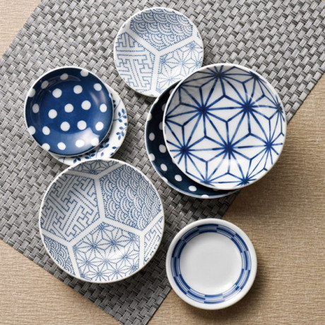 日本になじみ深い小紋柄の小鉢と小皿のセットです。家庭用食洗機使用可。
