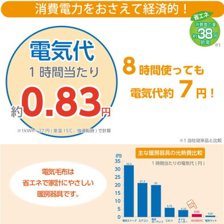 電気代がとても安いのが特長です。1日約8時間使っても約6.64円の電気代です。