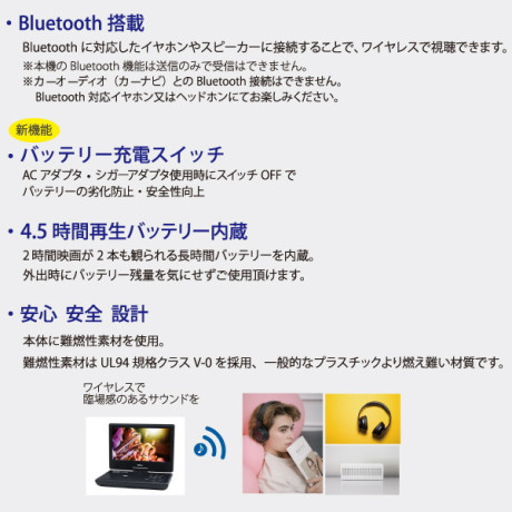 * Bluetooth送信:BT4.2 BDR/EDR、A2DP、AVRCP