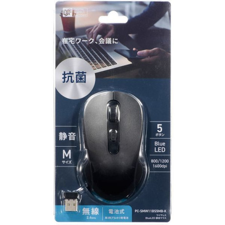 * 梱包内容: マウス本体、レシーバー(受信機)、単3形アルカリ乾電池(動作確認用)1本、保証書付取扱説明書