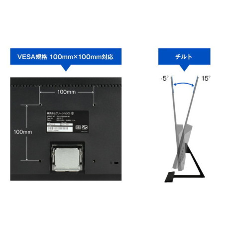 * VESAマウントインターフェース:100mm(0.7mmピッチ)M4 L10mm