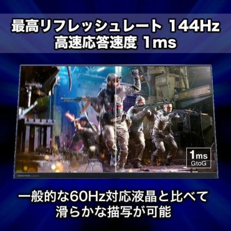 ★ 最高リフレッシュレート144Hzと応答速度1ms(オーバードライブ[HIGH]設定時、GtoG)の超高速な液晶パネルを採用。
