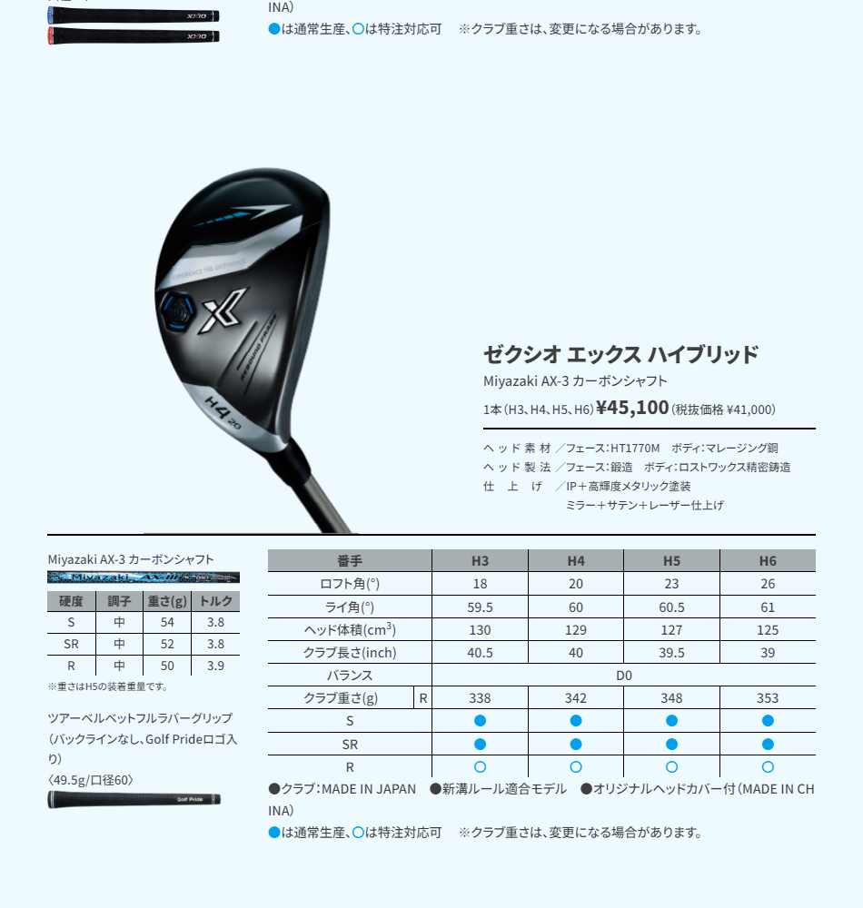 * シャフト:ゼクシオ MP1300 カーボンシャフト