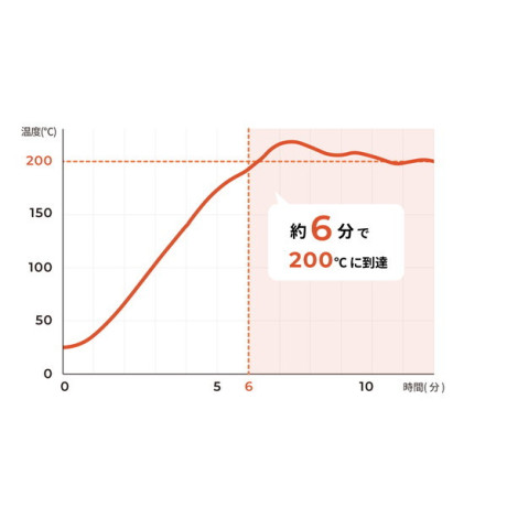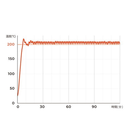 さらに、200℃の温度制御ができ、おいしさの最高点を引き出しながらも、健康に影響のある焦げを抑制します。(温度制御は深皿使用時のみ)