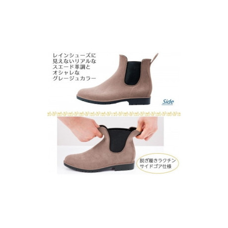 ★ 雨の日も晴れの日も、オールシーズン履きやすいスッキリしたフォルムのショート丈レインブーツ。レインシューズに見えないリアルなスエード革調とグレージュカラーがおしゃれ。カジュアルでもお出かけでも合わせやすいデザインです。