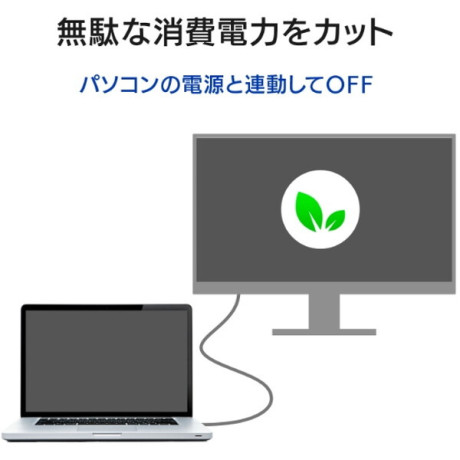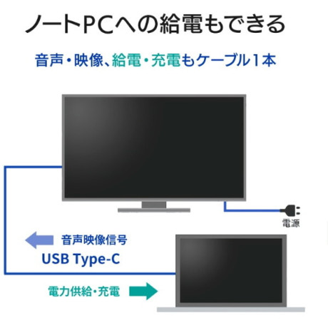 USB Type-Cケーブルで接続することにより映像・音声・ノートPCへの給電および充電がケーブル1本で行われ、使用するコンセントを最小限に抑えられます。