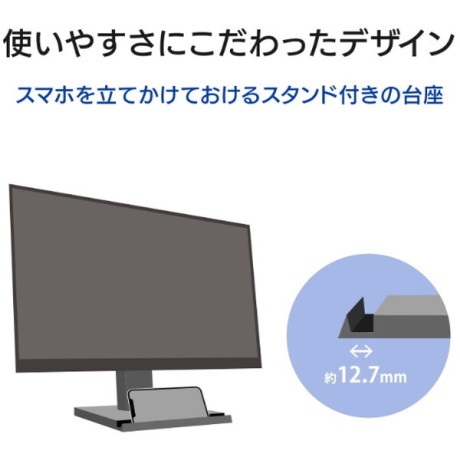 ケーブルをスッキリとまとめられるケーブルホルダー付きの台座を採用。さらに、スマホを立てかけられるスタンドを前面に配置しました。