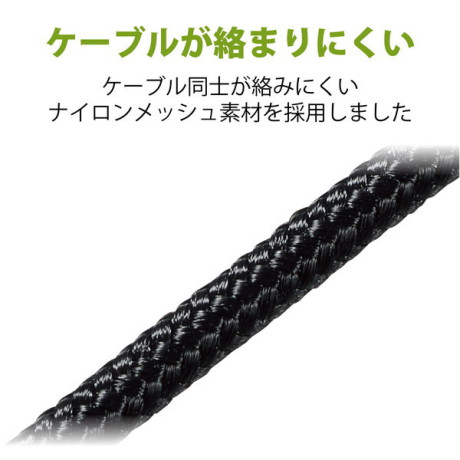★ コネクタから左右分岐部分にかけて絡みにくいナイロンメッシュケーブルを採用しています。