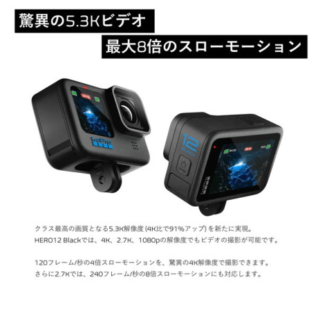 4Kより91%、1080pより665%も高い解像度の5.3Kビデオを撮影できるHERO12 Blackは、ハイダイナミックレンジ (HDR) を駆使し、細部まで鮮明なシネマティック画質でアクションをとらえます。