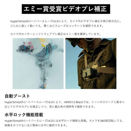 HERO12 Blackではこれがさらに進化し、画像のクロップを抑えながらブレ補正を強化して、HyperSmooth AutoBoostのパフォーマンスを最大限に高めました。