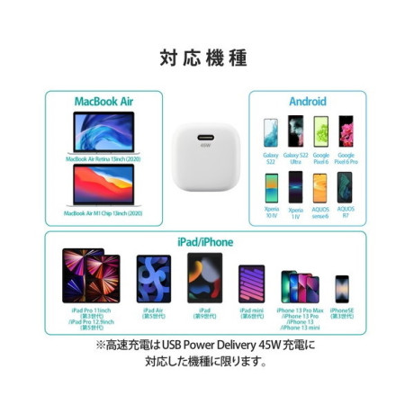 ※USB Power Delivery 45W充電に対応した機種に限ります。