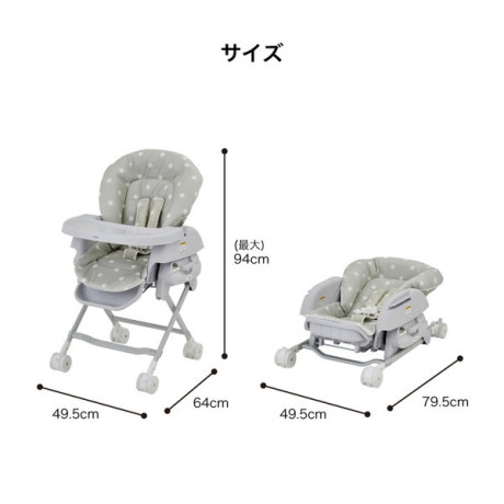 ・ハイチェア時:W49.5×D64×H94(最大)cm