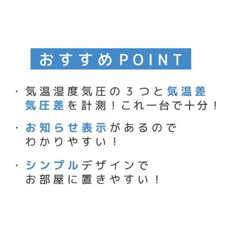★ 気温、湿度だけでなく気圧まで測定できる温湿度計です。