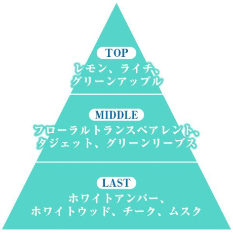 ・トップノート:レモン、ライチ、グリーンアップル