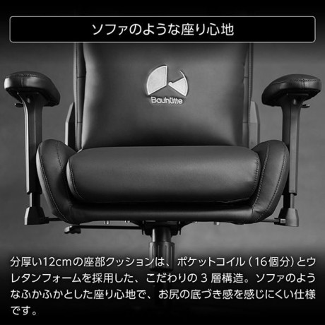 分厚い12cmの座部クッションは、ポケットコイル(16個分)とウレタンフォームを採用した、こだわりの3層構造。