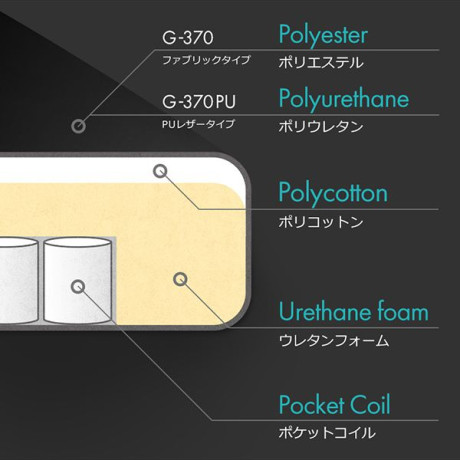 ・張り材(背もたれ部、座部、アームレスト):ポリエステル(G-370)、ポリウレタン(G-370PU)