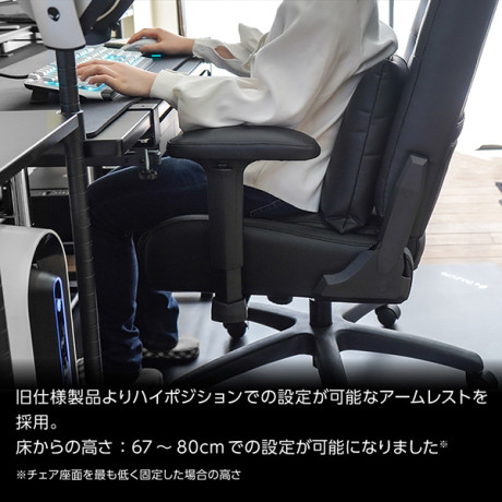前モデルで課題だった「肘掛けの高さが足りない」問題を解決する、新アームレストを採用。