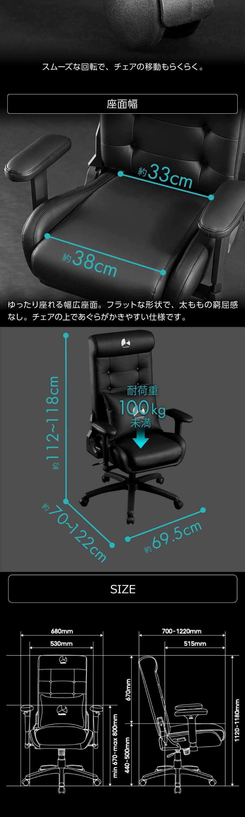 ・本体:幅 約695mm × 奥行 700mm(700~1220mm) × 高さ 1120mm(1120~1180mm)