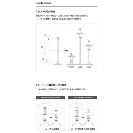 ★ ナチュラルなウッドシェードやスタイリッシュなメタリック土台&ポールなどの全9種の付属品付き。