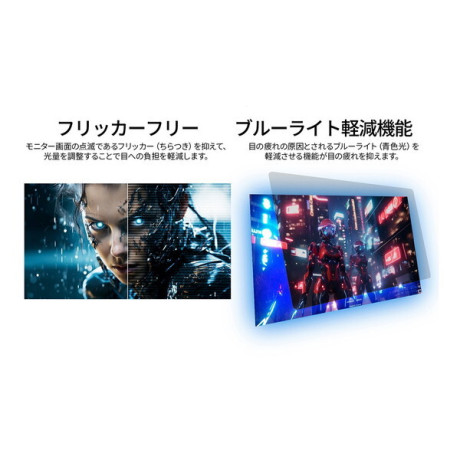 ★ インターフェイスはHDMI2.0(180Hz)×2、DisplayPort1.2(180Hz)×1を装備。ブルーライト軽減モードを搭載し、フリッカーフリー設計で、目と身体への負担を軽減します。