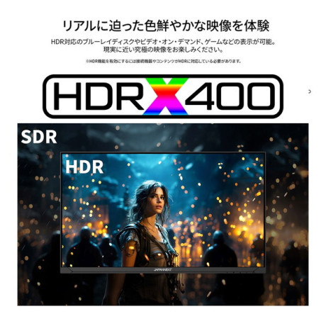 ★ 最大輝度400cd/m2、1000:1の高コントラスト比、sRGB:100%の広色域に対応した液晶パネルはHDR400相当の性能を持ち、コンテンツを色鮮やかに映し出します。さらにHDR(ハイダイナミックレンジ)に対応。AMDFreeSyncに対応。画面のリフレッシュレートとコンテンツのフレームレート間のずれによって生じるテアリングを回避し滑らかに表示します。