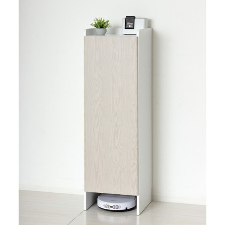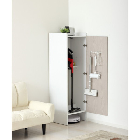 お掃除ロボットや掃除機をはじめとした掃除道具や生活用品のストックを一まとめに収納出来ます。