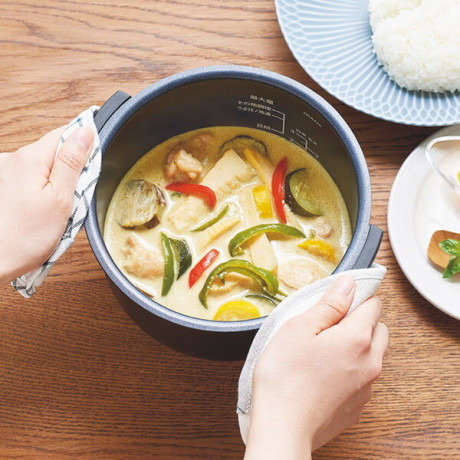 一般的な電気圧力鍋は1.7気圧以上の高圧力をかけて調理しますが、TIGER COOKPOTはやさしい圧力(約1.15気圧)で、調理を開始してから食べられるまでの行程時間を短くしました。