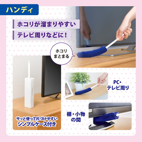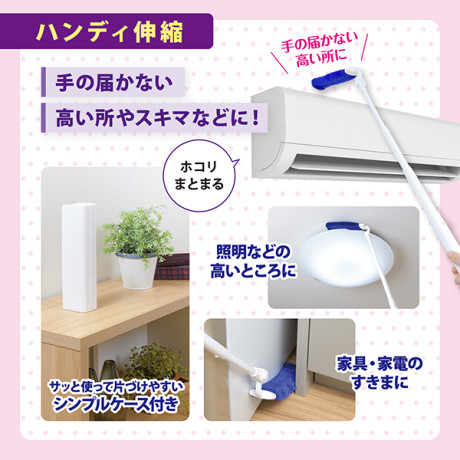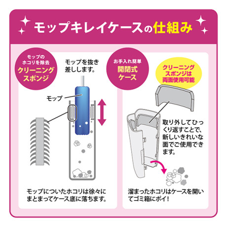 くり返し使えるホコリ取り。広い床面に!ケースに通すだけ、モップがキレイに!溜まったホコリはまとめてポイ!