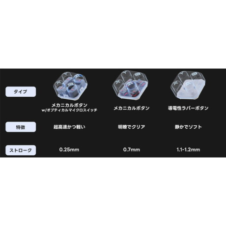 トリガーストロークは 0.25mm、従来のメカニカルボタンより64%速い応答速度を実現し、16倍の耐久性を誇ります。